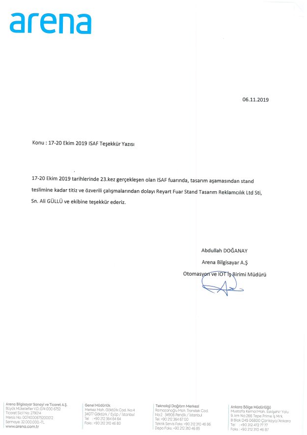 İSAF 2019 EN BÜYÜK STANDI ARENA BİLGİSAYAR -HONEYWELL TEŞEKKÜR YAZISI
